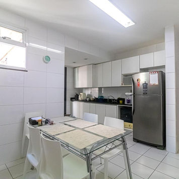 Sala; 3 quartos, sendo 1 suíte; cozinha; 4 banheiros sociais; armários planejados em todos os cômodos; dependência completa de serviço; piscina e churrasqueira.